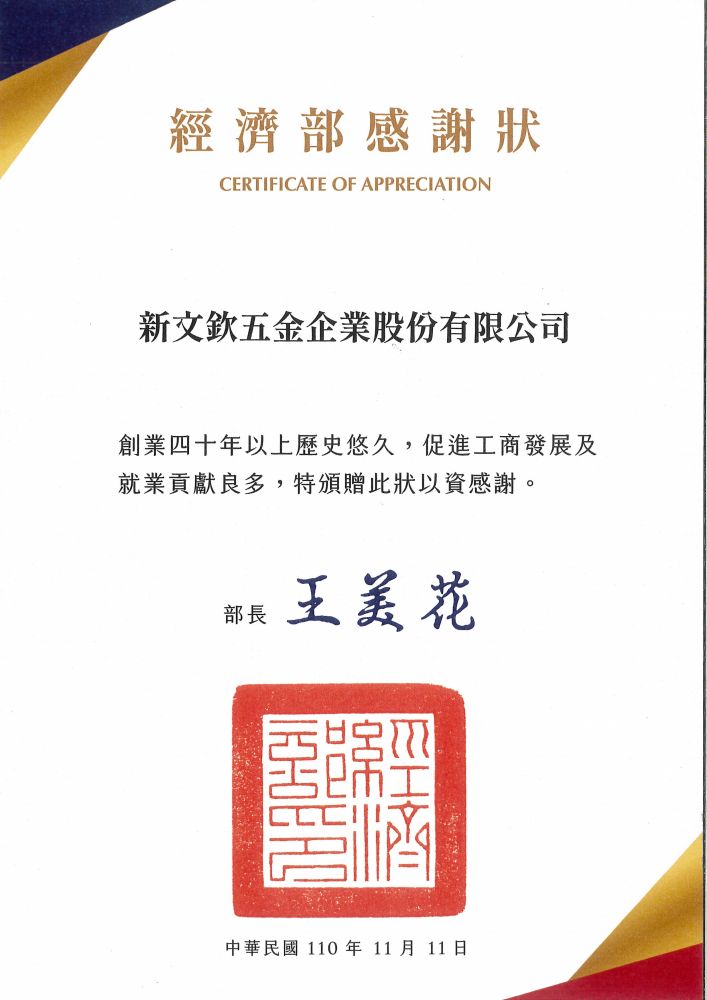 > 社會公益與關懷 > 經濟部感謝狀-創業四十年
